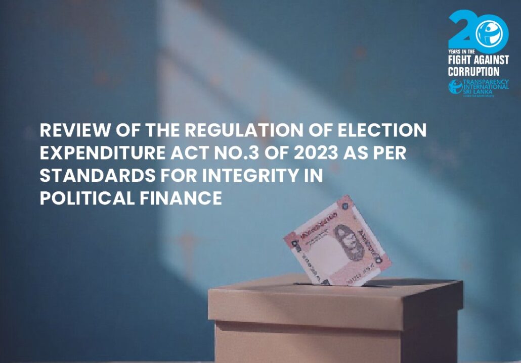 This review of Sri Lanka’s Regulation of Election Expenditure Act No. 3 of 2023 was conducted to assess its effectiveness, compliance with international standards, and identify avenues for strengthening the country’s campaign finance framework. The review aims to support a wide range of stakeholders including civil society organizations, policymakers, and key government institutions such as the Election Commission, Inland Revenue Department, and Auditor General’s Department, in promoting greater transparency, accountability, and enforcement. By examining the legal, institutional, and practical dimensions of the Act, the review offers recommendations to enhance the legislation and its implementation, as well as to ensure that candidates, political parties, and donors comply with disclosure requirements and spending limits, thereby fostering a more equitable and transparent electoral process.